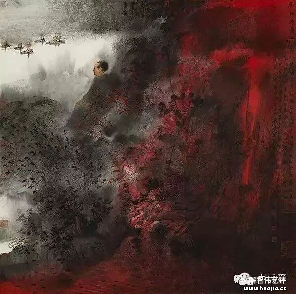 (卢禹舜作品) 卢禹舜说他的作品基本上围绕着两大意象展开自己的艺术空间,-一是宏观的宇宙洪荒之景象,二是以唐人诗意为题的山水。“天地有大美而不言”,卢禹舜不说,我们自然无法体悟卢禹舜作品中真正的美感与自然的本质具有超感官的无限性特点。 是不说,是不可说,还是作品本身就缺乏美感,从卢禹舜大量作品中我们分析研究,发现卢禹舜作品确实是无美可言。