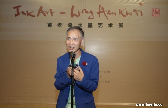 黃孝逵致辞 黄孝逵自上世纪七十年代移居香港,自学和研读传统水墨画,其作品皆是他通过实景的观察与亲身的体会而创作的,同时,他也关注西方当代艺术,不断思考香港当代水墨的去向。他在致辞中感言道:“我在香港生活了20多年,热爱这片土地。希望通过自身的努力创作,将香港文化生态下的传统水墨的艺术魅力发扬出去。” “今天看到黄孝逵先生的作品,我们感到特别兴奋!”中国美术家协会理论委员会副主任、《美术》杂志社社长兼主编尚辉表示,一方面,黃孝逵的作品让我们看到了传统水墨画如何进入世界语境的;另一方面,在进入世界语境之后又是如何回归传统文化的,其作品从形式感上最大限度拉宽人们的视域,有着独特的创造性贡献。 著名美术评论家、中国美术家协会理论委员会副主任刘曦林认为,中国水墨画空前地发生着演化,这种演化在香港尤其显得自由。黄孝逵先生对此体会尤深。所以他的画总是以笔法为骨,总是运墨而具五色,像太极图般任黑白虚实运转,总是源自造化之生意,又含蓄着诗词一般的心曲,总有着尽精微的刻画,又通向广大无垠的境界的想象。
