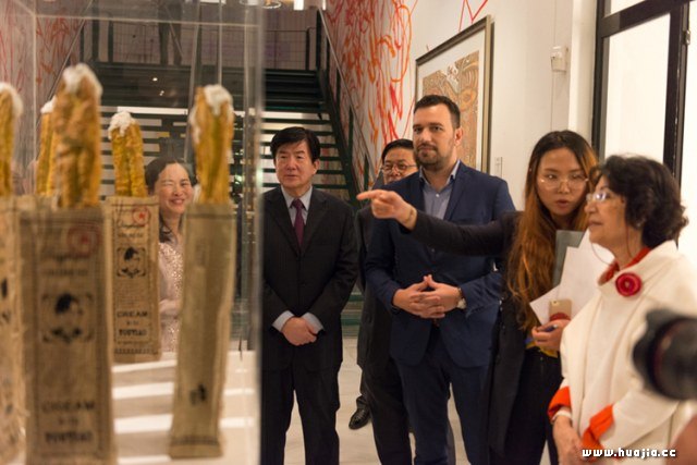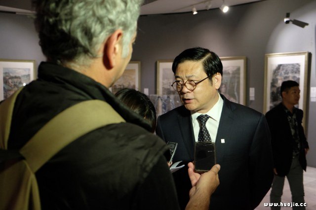中国美协分党组副书记、副秘书长陶勤引领中外嘉宾参观展览