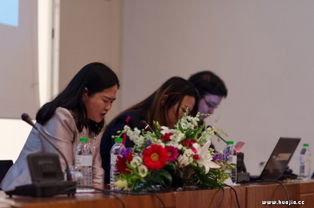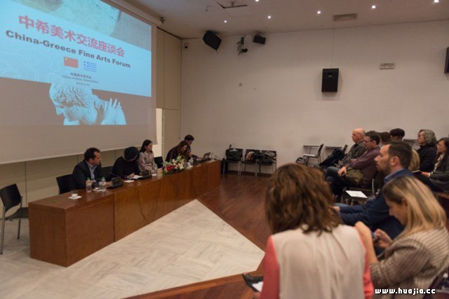 陶勤作主旨发言 塞萨洛尼基国立当代艺术博物馆玛丽娅馆长则希望继续扩大中西两国在艺术领域的开放,吸引更多的中国观众关注和喜爱希腊当代艺术,进一步拓宽中西两国其它领域不同层次的合作。 希腊艺术家维特洛克先生曾到访中央美院等高校讲学,对中国画有较为深入的研究,他认为中国与希腊都是拥有绘画传统的国家,但在表现空间上却都没有实现甚至摒弃了主流的焦点透视法,这其中的原因值得研究。如参展作品侯耀洲的《雅典风情》便是抛弃这一法则,而采用散点透视,这种艺术创作思维可以作为艺术发展的新方向和新趋势。