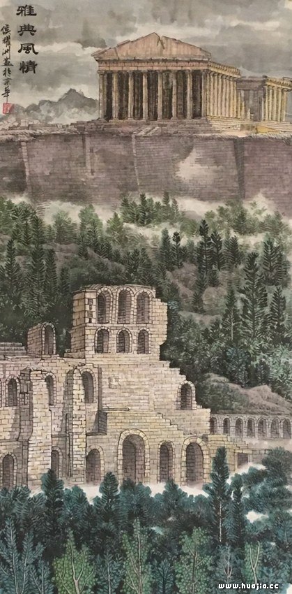侯耀洲《雅典风情》,中国画,136cm×68cm,2018