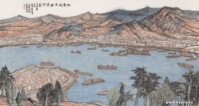 石峰《比雷埃夫斯港印象》,中国画,97cm×180cm,2018