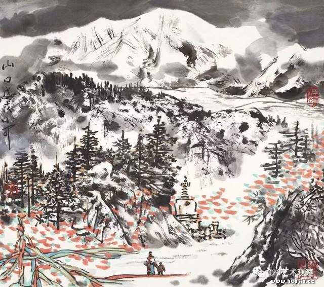路/46×52cm 笔墨之中要:有魂魄、有情感、有精神 “水墨”是李小可艺术创作的主要语言方式,从“北京系列”起步发展到“水墨家园”再到“雪域藏迹”“山水黄山”系列,他不断地找寻着语言与笔墨之间的契合点,逐渐形成了自己独特的艺术表达风格。李可染的山水画着重表现秀丽深邃、情致浓郁的江南水乡,李小可没有因循父亲的路子,而是另辟蹊径,选择了特殊的藏地题材。西藏特殊的自然、文化、意境以及特殊的精神性深深地触动了他,他说:“要表现西藏的特殊性,把自己内心的感觉画出来,是没有先例借鉴的,所以需要深入体验,要走在其中,从雪山显露出来的瑰丽和雄浑中感受它内在的‘魂’ 。