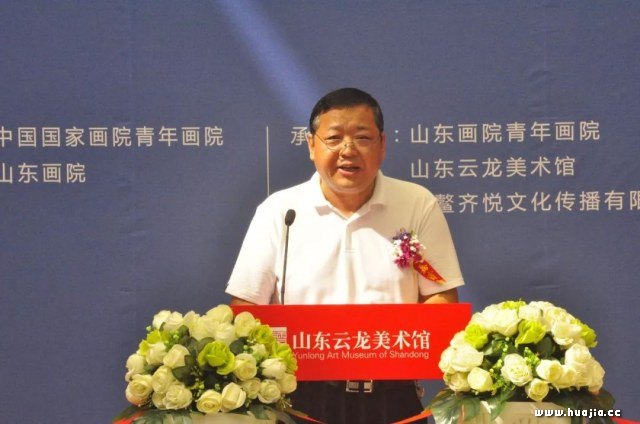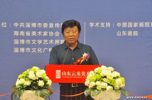 海南省美术家协会副主席、海南师范大学美术学院教授、硕士生导师卢向玲女士讲话 参展艺术家有:原文化部艺术司文学美术处正处调、戏剧处处长,文化艺术出版社总编辑,中国艺术研究院文化发展战略研究中心名誉主任、研究员查振科先生;山东省美协理事、山东省致公党书画院副院长、山东省美协山水画艺委会副主任、山东画院创作部副主任、山东画院青年画院院长常朝晖先生;山东省美术家协会理事、山东省美术家协会中国画人物画艺术委员会常务委员、山东省中国画学会副秘书长、山东画院花鸟创作部主任张德娜女士;鲁迅美术学院教授毕学军先生;山东省中国画学会常务理事、副秘书长,淄博市中国画学会会长、淄博市美术家协会副主席,晨报画院院长田根承先生;中国艺术研究院中国画院专职画家、中国美术家协会会员、中国书法家协会会员任清先生;山东艺术学院美术学院实验艺术系主任、副教授、硕士生导师,山东美协实验艺术委员会副主任兼秘书长,山东青年美术家协会副主席孙 磊先生;济南市美术家协会理事、济南市美术教育学科带头人、济南市长清区美术家协会主席冯元民先生;中国民主同盟盟员,北京工笔重彩画会会员尹燕华女士;山东省美协人物画、山水画艺委会委员,济南市美术馆(济南画院)副研究馆员、研创部主任李静女士;山东大学艺术学院特聘教授,淄博市青年美协副主席,淄博市中国画学会副会长,山东省青年美协主席团成员,山东省中国画学会理事曹新刚先生;山东省美术家协会副秘书长,山东省青年美术家协会副主席,山东画院青年画院副院长,山东省中国画学会副秘书长,山东省美术家协会山水画艺委会副秘书长,济南市美术家协会副主席,济南市政协委员陈健先生;中国美术家协会会员,山东省青年美术家协会副主席,济南市美术馆(济南画院)研究创作部副主任李恩成先生;山东画院青年画院副院长,山东泉城画院秘书长、副院长,山东美协副秘书长云门张岩先生;山东省美术家协会副秘书长,现代刻绘艺委会副主任,花鸟画艺委会委员,山东省青年美术家协会副主席,山东省中国画学会副秘书长,山东艺术家学术委员会花鸟创作院副院长樊磊先生;文化部青年书法、篆刻委员会委员,文化部青年美术委员会委员胡小刚先生;山东省青年美术家协会主席团委员,山东省中国画学会理事,济南青年美术家协会副主席韩斌先生;山东财经大学艺术学院老师云门张凝女士;山东工艺美术学院造型艺术学院教师齐敬峰先生;西泠书画院在职画师陈可先生;西北大学硕士生导师,山东省中国画学会理事,山东青年美协主席团成员,山东美协当代水墨艺术委员会副主任孙棋先生;山东省中国画学会理事,山东省青年美术家协会理事,济南市青年美术家协会副秘书长李兴杰先生;烟台市美术家协会副秘书长,烟台画院创作部主任张京刚先生;青岛工笔画学会理事牛文娟女士;淄博市美术家协会副秘书长,淄博市中国画学会理事,山东云龙美术馆艺术总监万光锋先生。