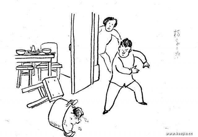 ▲方成先生为侯军著作所绘插图 尤其令人难忘的是,2011年6月,方老在孙继红大哥的陪同下,专程坐飞机来到深圳,在我们家度过了他的94岁生日。那天,我家就像过节。我到酒店给老人家订了一个生日蛋糕,并在上面写下五个大字:“方老永不老”。李瑾则依照方老事先的叮嘱,给他做了正宗的北京炸酱面和天津打卤面——方老此前曾多次在我家便餐,对李瑾做的北方面食印象深刻,所以临来之前特意嘱咐:别麻烦,只要一碗李瑾的“长寿面”。