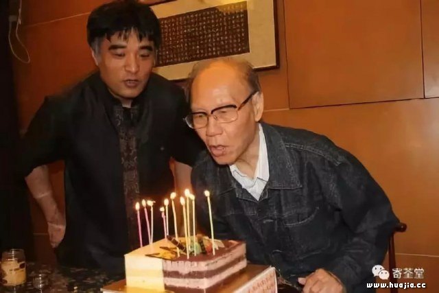▲方成先生在侯军家中度过94岁生日 而让我们吃惊的是,方老以九旬高龄,举杯畅饮,豪气盈怀。我原本不胜酒力,只能一杯陪到底,孙大哥也只是适时举杯,陪着老爷子抿一口,大部分酒都被方老“独领风骚”了。当晚,一瓶陈年茅台被喝个精光。方老面颊泛红,略带微醺,餐后还兴致勃勃地要上楼去,到我的书房看书。我扶着老人拾级而上,方老边走边说,人啊,一眨眼就老了,你要趁着年轻,多看书,多写书,你那些小人物还要接着写,你写出来,我还给你画插图,我现在还能画,你可要抓点紧啦……