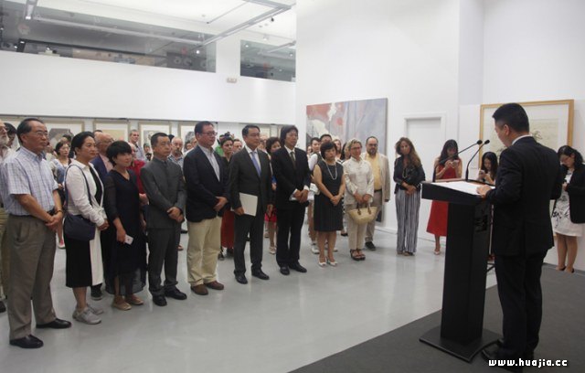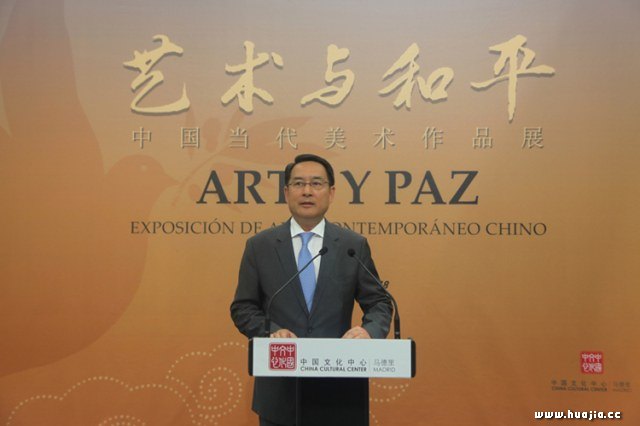 中国驻西班牙大使吕凡致辞 吕凡大使在开幕式上介绍道,西班牙经历腓尼基、古罗马、西哥特、阿拉伯等多个文化的浸染,孕育出了灿烂、辉煌的文化艺术。西班牙人民也曾饱受战火洗礼,因而反对战争、向往和平。作为古丝绸之路延伸的西端,伊比利亚半岛见证了中西交往之初的星星之火;两千年之后,西班牙又成为“一带一路”倡议的重要参与方。吕凡大使表示,在今年中西建交45周年、“一带一路”倡议提出五周年之际,中国美协以“艺术与和平”为主题,策划并实施此次展览,既是以艺术和美学的方式诠释中国人民爱好和平的优良传统,展示当代中国艺术家对和平的全新审视和深入思考,又从一个侧面给出了关于维护和平的中国方案,令人鼓舞、意义深远。 丁杰主任首先高度评价了西班牙对世界文明进步的卓越贡献,赞赏了西班牙众多艺术大师和令人惊叹的艺术成就,并指出中西两国都有着光辉灿烂的发展史,两国交往源远流长、绵延至今。接着,他从专业角度介绍了作品主题呈现两大特点:一是用独特的中国传统水墨艺术语言描绘“一带一路”沿线国家风情,二是展现中华民族追求的人与自然和谐共生理念,反映中国时代精神。作品风格多样,门类多元,为西班牙人民带来品位中国的独特体验,为中西两国艺术跨越时空、加强对话提供绝佳的平台,并为“一带一路”倡导的文化交流和文化互鉴添砖加瓦。他祝愿西班牙观众能尽情享受这场中华传统文化和中国当代美术的视觉盛筵。 姚永宾主任在致辞中深情地回顾了西班牙艺术大师毕加索为第一届世界保卫和平大会绘就了“和平鸽”主题海报,使“和平鸽”成为国际公认的和平象征。时至今日,和平与发展已成为时代主题,不同国家、不同种族的联系日益紧密。艺术不仅忠实地反映着当代社会的变化和憧憬,更凭借其跨越语言和文化界限的特点,成为人们思想交流的重要桥梁之一,是世界深化沟通、促进融合的极佳催化剂。他特意提到,今年也是马德里中国文化中心落成五周年,在两国共同参与“一带一路”建设的大背景下,中西关系迎来新的历史契机,本展必将为两国文化艺术领域的交流锦上添花。
