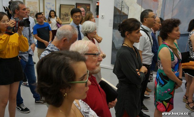 中外嘉宾在展览现场进行交谈 曾参与中国美协中国中青年美术家海外研修工程的青年美术家们也为本展奉上了反映研修成果的佳作,如张亮《捷克克鲁姆夫小镇》、罗文勇《布鲁克林的暮色》等。中国人民大学艺术学院副教授高毅和山东艺术学院副教授孙岱婵此次随代表团出访西班牙,分别带来了作品《乌克兰老人像》和《味韵》参展,两件小写意人物作品以传统画材创造出严谨写实的质感表现效果,使形象更为真实、精微,富有现代气息。值得一提的是,孙岱婵的丈夫就曾是一名中国维和军医,曾在战乱中的苏丹医疗救助了众多患者,将中国人民的友谊与祝愿带到了非洲大陆,也使本次展览主题更具意义;中国艺术研究院教授许俊和中央美院教授姚舜熙还应邀专门创作了表现马德里标志性景观的水墨画《太阳门广场一景》和《金秋》,将无偿捐赠给中国驻西班牙大使馆永久陈列,供中外友人观赏。