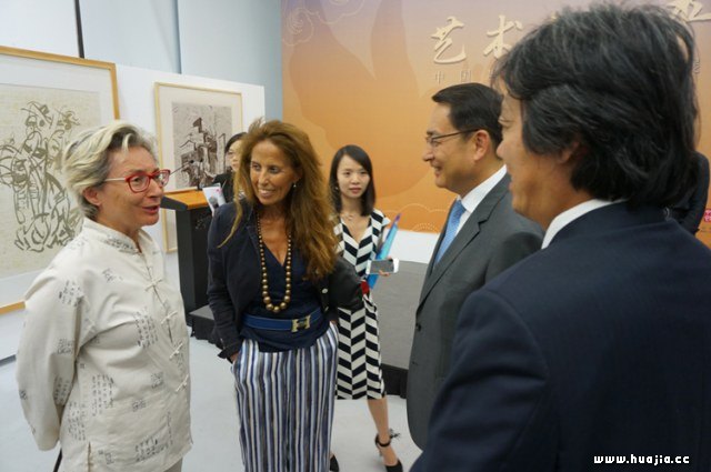 参展美术家与吕凡大使交流作品创作情况
