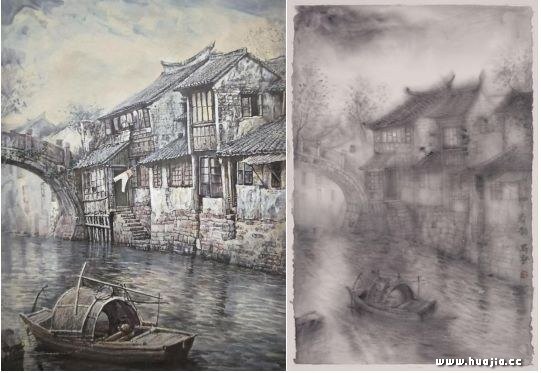 师界x,中国美术家协会会员,国家一级美术师,《书画研究》主编,北京汉方美术馆执行馆长,河南中原文化艺术学院美术系教授,2016北京大学访问学者,中国工艺美术学会理事,河南省中国画学会理事。北京宋唐画院常务副院长,崆峒山水书画院院长。河南大学美术系毕业,曾就读于中央美术学院国画系“山水精神”专题班、中国国家画院范扬工作室等。作品多次参加全国美术展览并获奖,入选第十一届、第十二届全国美展,多幅作品及学术论文发表于国内各类美术刊物,并被国内外多家艺术机构收藏。 这谦和有加的老师就是师界x,从展览履历上可以看到,她是从2007年开始艺术家生涯的,也是这一年创作了《古镇新晖》系列作品,自此开始抄袭余春明作品,可能一开始还有一点走心,也尝试着自己变变构图,尝试了一些其它表现手法,可能最终发现如何布置还是不如拿来的好,自此开始了大批量的直接复制,不同的是油画变成了国画,水彩变成了国画,2007年,余春明那个时候大部分时间还在美国,国内的资料应该还不是特别多,不得不说这位美女画家很有心,也很有眼光,重要的是艺术家不在国内,少有被发现。 四处拜师学艺,最终是什么使她沦落到了抄袭的地步,可能是利益也可能是真爱,这个事件只是众多抄袭事件的一瞥,最终如何解决还要看接下来的事态发展,可怜的只是那些收藏者,收藏的作品瞬间就变成了印刷品,虽然是人肉印刷机,那价值又和在呢,盗版就是盗版,只要看到真东西就LOW态百出了。