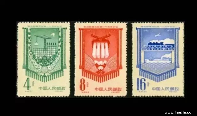 1958年1月30日中国邮电部发行的《胜利超额完成第一个五年计划》邮票。