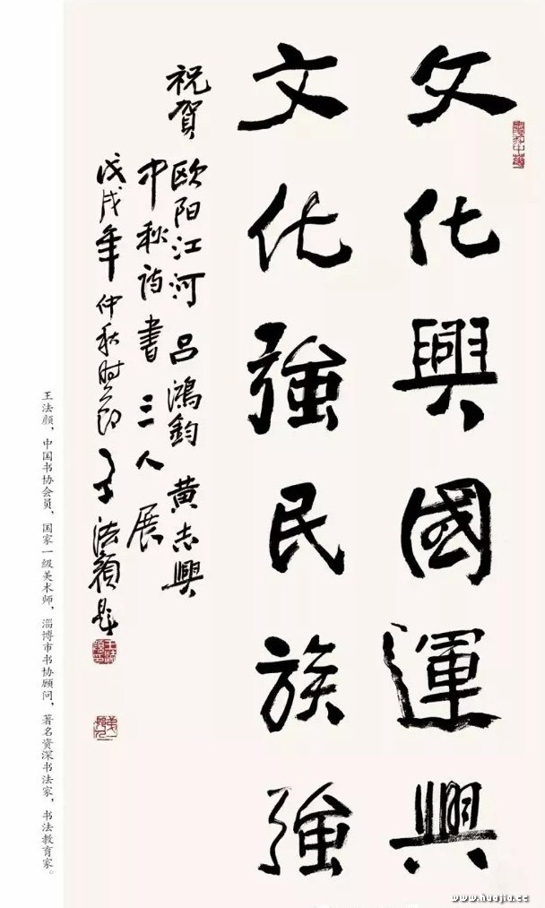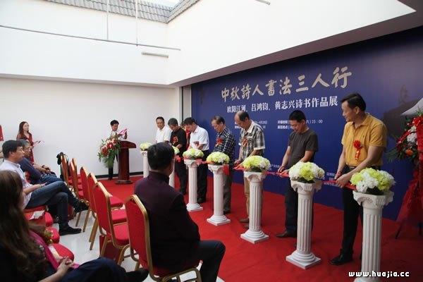 由中共淄博市委宣传部、淄博市文学艺术界联合会、淄博市文化广电新闻出版局、淄博日报社、淄博市广播电视台主办,淄博市文化体制改革和文化产业发展办公室、山东鸿润文化传媒有限公司、根德文化、鸿阅书画苑、《圈子》杂志社承办,由淄博市委高校工委 、淄博职业学院、淄博市土地管理局、淄博市现代诗歌学会、国际陶艺家协会、淄博市散文学会、淄博市朗诵协会、淄博百龙国际旅行社协办的,“中秋诗人书法三人行-欧阳江河、吕鸿钧、黄志兴诗书作品展”在淄博鸿嘉星城鸿润艺术馆隆重举行。