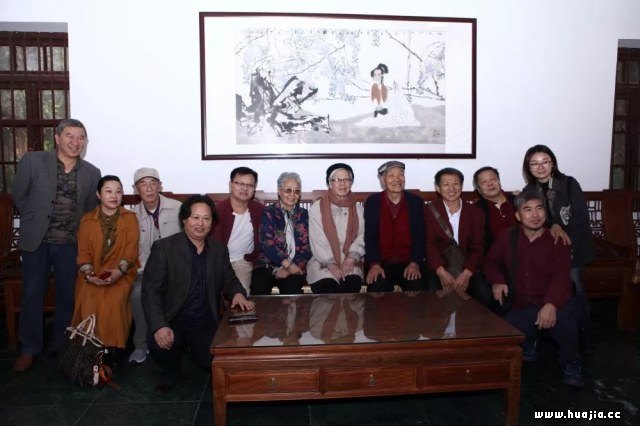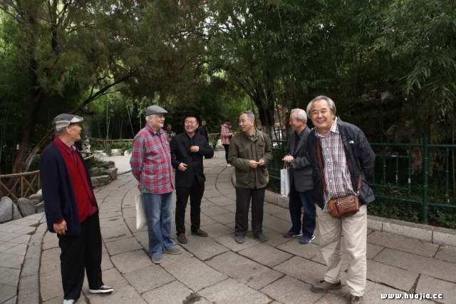 山东著名花鸟画大家:齐辛民(左一)、王盛华(左二)、刘玉泉(右一)三老友及朋友崔签等