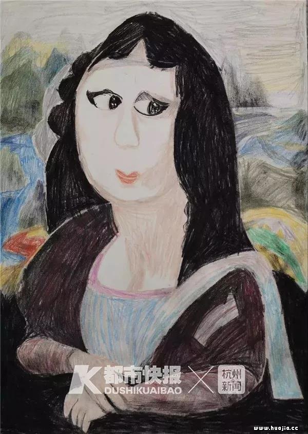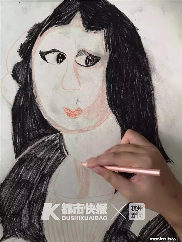 纯真无邪的画作 打动了意大利的评委 同样在今年8月,余杭区红十字会“小手大爱”志愿队和图索画室的老师也找到了已经结对3年的源源,提供了一次到国外评比的机会。按照参赛主题,源源需要画一幅和文艺复兴三杰有关的作品,和几千名小朋友画的几千幅画一同比试。 “源源最擅长画人物,对人物的拿捏相当准确,要不就尝试一下《蒙娜丽莎》?” 在徐欢的建议和指导下,源源蹦蹦跳跳进了画室,抓起了彩铅和炭笔。她首先画了一双扑闪着灵气的乌溜溜大眼睛,继而就勾勒出了一个她眼中的蒙娜丽莎……喝着老师给她买的奶茶,源源在甜蜜轻松的氛围中,不到一下午就完成了这幅她心目中的《蒙娜丽莎》。
