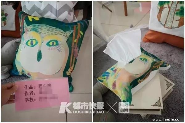 《猫头鹰》 这两幅作品后来还被制作成了猫头鹰靠枕、拎包袋和布艺纸巾盒,手舞足蹈的小人、明快的色彩和奇妙构图给人们单调的生活平添了一份春意盎然的活力。