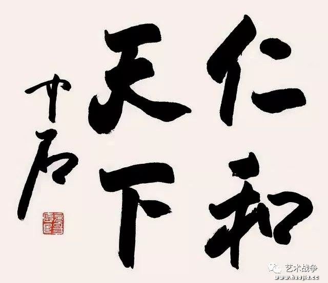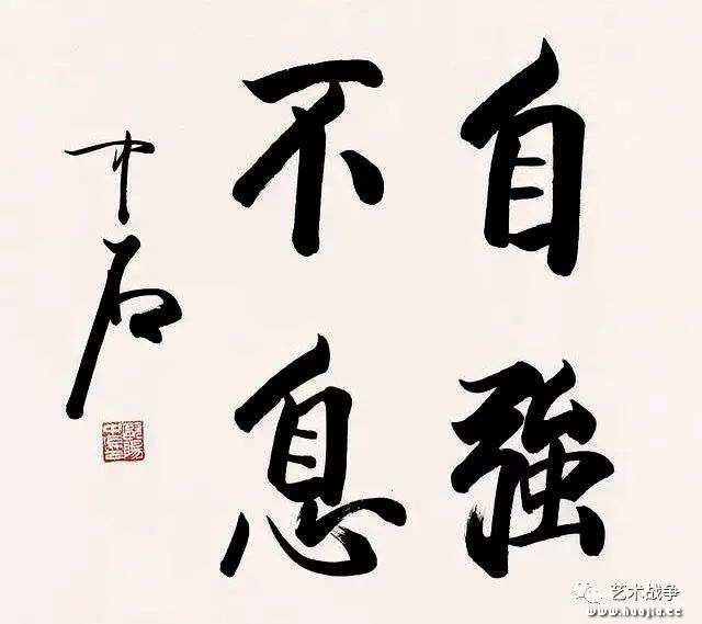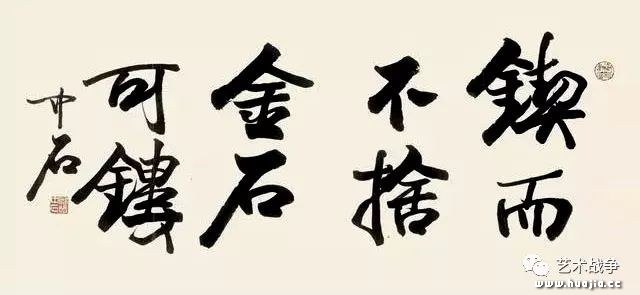 其二,先生不知中国毛笔“性格”,仅仅知道毛笔是艺术表现的“工具”是不行的。一如中医不了解“药性”与“人性”的辩证关系;倘阴阳不分,虚实不辩,那是要死人的!中国书画用笔着力在一个“转”字,转什么,自然是把心灵的内景层“转”到纸上,创造生命景观;而这一目的的实现全在笔墨功力支援意识。欧阳老人的书法,不能引“笔墨”为“知己”,仅仅以“工具”驱使之,结果导致书法作品气韵皆失生命全无。我尝多次告诫跟我学书画的学生,要视“笔墨”为自己的“骨肉”;它,与我们的手指一样“十指连心”;没有这一精神追求,永远是中国书画的门外汉! 其三,欧阳中石老夫子不知中国书法“求脱”二字的深层含义,仅仅在形式层靣上去“求”,最终导致了书法的工匠主义的“实惠”价值,而丧失了个人主义的精神象征。我承认先生的书法作品是眼下“大众文化”的代表,是当代“做大,做强”的媚世主义者的代言人;但也恰恰是一点,掩埋了作为艺术家的悲悯情怀和干予人性的文化人的担当。古人所谓的“求”,指的是从立言到立功,从立功到立德的生命进境;然后再从立德到立功,从立功到立言的形式与精神的双向“脱颖而出”。脱,脱口而出者也,此匪昜之境也。