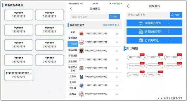 1月6日,西安美术学院和天津美术学院在早上6点开放报名通道。 全国70万美术生定好闹钟,捧着手机准备报名。 但他们没想到,等待他们的是软件崩溃,严重乱码。 所有的学校、考点,都成了这样: