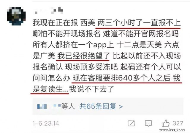 跟着系统一起崩溃的,是中国70万艺术生。 他们的命运,被一块块手机屏幕联系在一起。 屏幕这边,是不断闪退、缓冲的报名界面。 屏幕那边,是无数个绝望、无奈的家庭。 这其中,不仅有应届生,还有复读生。