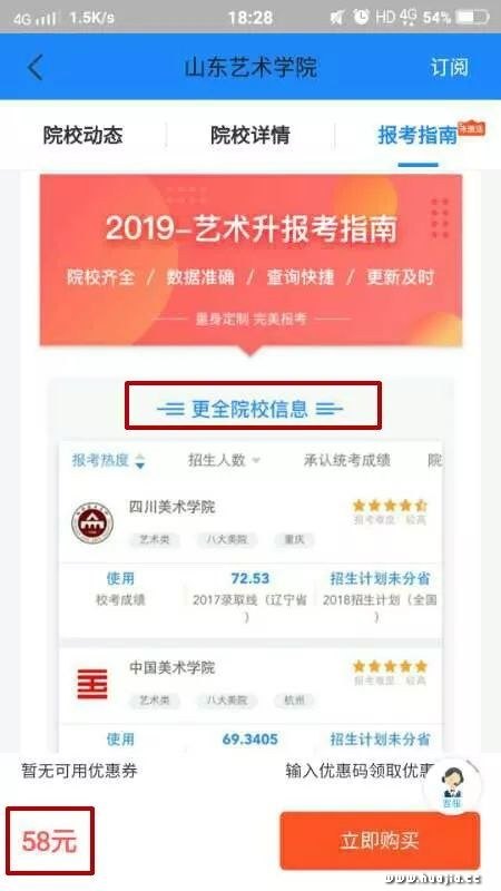 想查询一所院校的信息?不好意思请先上交58元。 通常,每个艺术生会报考3-6个学校。 加起来又是一笔可观的数字。