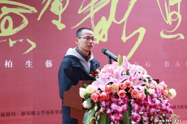 画家王柏生致答谢词 福建省惠安县人大常委会副主任黄育聪,福建省惠安县政协副主席康丽红,福建省惠安县文联主席黄丽蓉,中恒嘉集团董事长张志聪先生,福建美协副主席陈金华、福建美协副主席郭宁、美术报副总编辑潘欣信等领导和嘉宾,以及艺术家、媒体记者等300余人出席了开幕式。陕西省中国画研究院、北京世纪元年文化传媒有限公司、浙江时与文化传媒有限公司、山西祖一文化影视传媒有限公司、西安市网艺文化传媒有限公司、山东淄博文源博物馆、南昌市承方传媒文化有限公司、山东静心斋文化传媒有限公司以及甘肃省画院院长李伟,中国美术学院何士扬和来自日本、韩国、等国家的收藏家发来贺电。美术报、中央电视台书画频道、雅昌艺术网、中国书画报、中国美术报、收藏杂志、艺术市场杂志、福建电视台、泉州电视台、泉州晚报、惠安广电局、惠安乡讯、京津冀画家网、中国现代美术网、中国画家网等媒体也对此活动进行了跟踪报道。