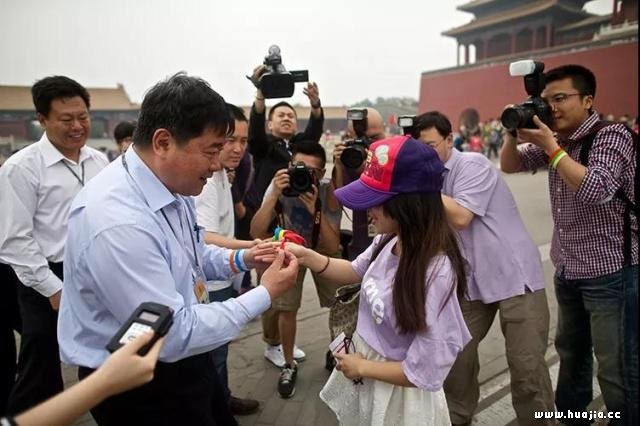 2013年5月18日,国际博物馆日,“无烟故宫”主题活动。从今日起故宫博物院在全院范围内禁止吸烟。故宫单霁翔院长与故宫志愿者一起向观众发放刻有故宫logo和“无烟故宫”宣传语的彩色手环。周岗峰 摄 此后,在故宫经常能见到单霁翔穿着布鞋、黑褂衫,一个人低着头慢慢走,看见垃圾、烟头就立马俯身捡起。有媒体报道,2013年,他从开放区域内捡起了1000多个烟头。时至今日,从高处往下看,紫禁城屋顶没有一根草。 环境干净了,单霁翔又开始拆违建、搞腾退。过去故宫里有许多违规建筑,用于办公的彩钢房不仅占据了不少空间,而且很不美观。如今,故宫已拆掉临时建筑1.3万平方米,原有的59处彩钢房已全部拆除。 除此之外,不少非故宫单位还占着古建筑办公,尤其是西华门里,训练运动器具、机动车停车场地等占据了大片空间,既影响故宫文化遗产安全,也影响故宫博物院进一步扩大开放。单霁翔就四处奔波,“送走”这些职工。 限流与开放 2012年,故宫的参观人数就已经突破了1500万人次,成为全世界第一个年参观人数超千万的博物馆。 “很不幸,我是在2012年上任的”,单霁翔说。每天,故宫里人来人往,摩肩接踵,游客们不仅没法认真观赏文物,而且极易发生事故。 经过详细的测算,2015年6月故宫开始限流:游客每天至多8万人次。“限流不仅是为了缓解压力。如果观众超过8万,人挤人,后面人看前面人的后脑勺,这对观众的权益是个伤害。” 为了实现这个目标,单霁翔做了两件事:一是用大屏幕实时更新余票数量,即使余票售完,仍提供全天预约服务;二是开设了32个售票口。以前,游客排队买票都要花一两个小时,排几百米的长队,而现在,95%的游客能在3分钟内买上票。
