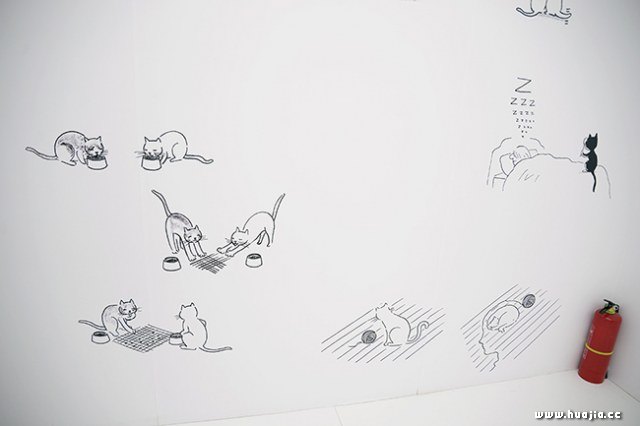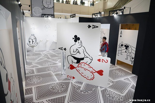 “任意门”漫画展入口通道 本次展览在空间布置上也让人耳目一新:展览将漫画融入情境,通过“漫画扑克”作为房间主题谜面,制作而成了九道“任意门”,分别为:猫之屋、动物园、低头族、孤独之眼、独处时刻、一个人的洗手间、美食的悖论、启示之屋和麻将之屋。说到“任意门”,更多人可能会马上想到哆啦A梦口袋里掏出的那个人人想要得到的“任意门”。但此“任意门”非彼“任意门”,Tango的“任意门”门后是九个不同的奇妙空间,虽然主题不同,但相同的是每个空间都充满不经意的隐喻,或轻松诙谐、或直中内心、或发人深省,总能找到一个属于自己的世界。这或许就是“任意门”真正的含义。