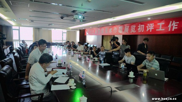 工作会现场 徐里书记首先宣读了“第十三届全国美术作品展览”七个展区电子初评评委会名单、监审委员会名单。 中国文联美术艺术中心展览处副处长孙同和宣读了《第十三届全国美展监审委员会工作条例》和《保密工作条例》。 中国文联美术艺术中心展览处处长董竟成介绍了第十三届全国美展电子投票系统的评选程序、办法。