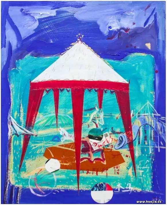 庞辛森 工作室旁的游乐场,90x70cm,木板丙烯综合,2018,韩国 近些年来,我的创作时间变得十分紧张而分散,伴随着工作和生活中繁忙琐事的不断加持,让我只能尽力去搜寻宝贵的创作时间,所以平常我会在处理其他事情的时间间隙中,努力为我下一段完整的创作周期提供充分而完备的素材积累。因此,在这样一个创作时间被其他事物不断挤压而不得不紧张忙碌,同时自己又要不断争取创作主动权的双向抗衡中,我谨慎地去寻找一个模糊的界限,一个抽离了混杂外界气味的真空地带。我开始享受这种亢奋的状态,有一种“自我膨胀”的冲动!