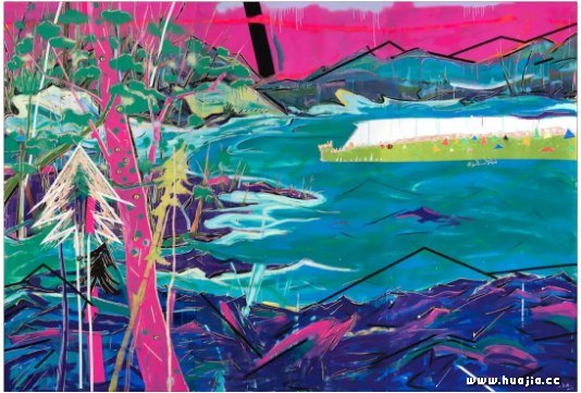 庞辛森 竞选市长,70x90cm,木板丙烯综合,2018,韩国 而《竞选市长》这幅作品更像是一则发生在自然空间中的社会寓言,一辆具有韩国本土符号化性质的竞选货车在画面中路过,从刻意划过的刀痕提示出了它的运动特征,而这路过既是瞬时的也是永恒的,既是运动的也是静止的。我无意中所瞥见的这一画面,时时在我脑海中盘旋,像一阵短时间内无法消失的漩涡,在画面的乱树中疯狂掠夺,现实和虚拟的空间在我的身体里迂回,而我的意识也伴随着树木和车的视觉意象的搅乱而渐渐兴奋起来······