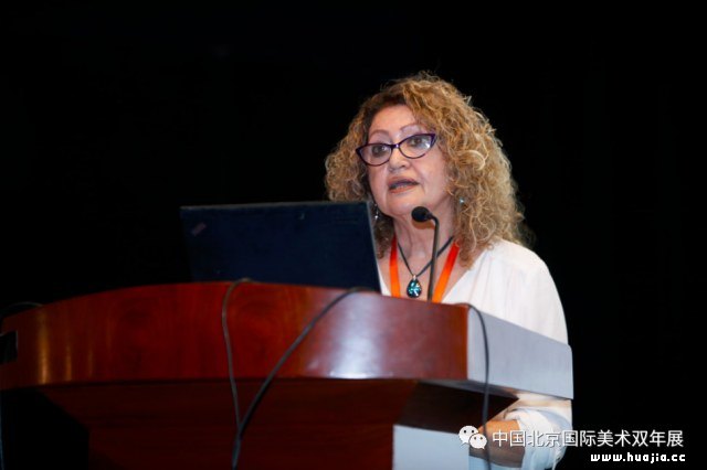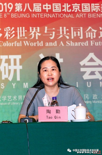 中国美协分党组副书记陶勤作主旨发言 随后,陶勤副书记代表活动主办方做主旨发言。她指出,北京双年展将中国的主流美术置于一个国际化界面,传播匹配大国外交的主流国家形象。从首届参展国45个国家发展到本届的113个国家,不仅体现了中国美术的国际号召力,其构建和谐世界的系列学术主题也不断引发国际共鸣。北京双年展以“绘画和雕塑的当代性延伸”为办展宗旨而保持着独立的姿态,为世界范围内架上绘画的回归与复兴提供了“中国支点”,本届主题更是体现出构建人类命运共同体国际背景下,世界绘画和雕塑的艺术担当。她强调,北京双年展将坚持打造百年品牌的思路,继续关注当下、直面即时发生的重大事件,并为装置、影像等新媒体艺术提供展示空间,努力把同中国建交的国家全部纳入参展范畴,向世界持续阐发中国艺术主张。 一、人类共同命运关联当代艺术创作