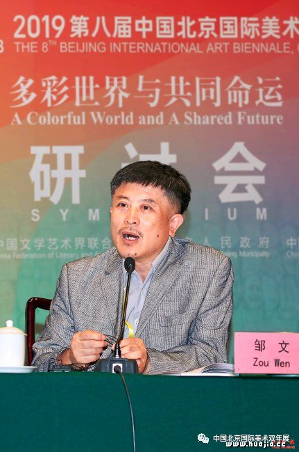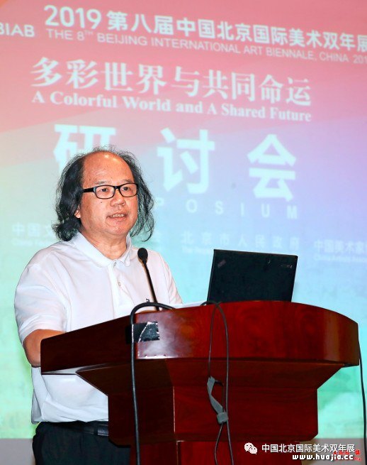分场主持人、北京双年展策划委员王镛 作为北京双年展的发起人之一和资深策委,来自中国艺术研究院的王镛教授对于本届双年展的主题有着独到的理解。他在《全球视野与人类情怀》的发言中指出,本届主题旨在以世界文明多样性的艺术形式构建人类命运共同体的理想境界。东、西方不再纠结于观念对立或传统与现代的两难选择,一切人类创造的艺术形式皆可在创造性地转化为当代世界的艺术形式。本届双年展作品也充分体现了世界多样性文明交流互鉴的精神,既保持着东西方各国不同文明的传统特色,又吸收了其他国家文明的艺术元素,一方面“以我为主、我自为我”,另一方面“我中有你、你中有我”,共同绘制人类命运共同体的宏伟蓝图。