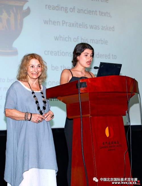 希腊艺术家斯特拉(左) 来自希腊的艺术家斯特拉女士显然对本国悠久而深厚的文化艺术传统充满自豪,她选取了大量古迹遗存,论证了在辉煌的古希腊时期,色彩在包括绘画、雕塑甚至建筑方面都扮演着分量极重的角色,古人对于色彩的巧妙运用达到了令今人钦佩的程度。当然,在大多数当代艺术中,色彩也是其艺术价值的决定性因素。对于艺术的社会功用,她也抱有相似看法:艺术不仅影响我们的情感和审美素质,而且是人与人之间一条非常有效的接触、沟通、合作的渠道。艺术所倡导的文化多元化是全球化时代促进和平与相互理解,推动进步与繁荣的唯一安全框架。 三、多国特展集中展示艺术多样性