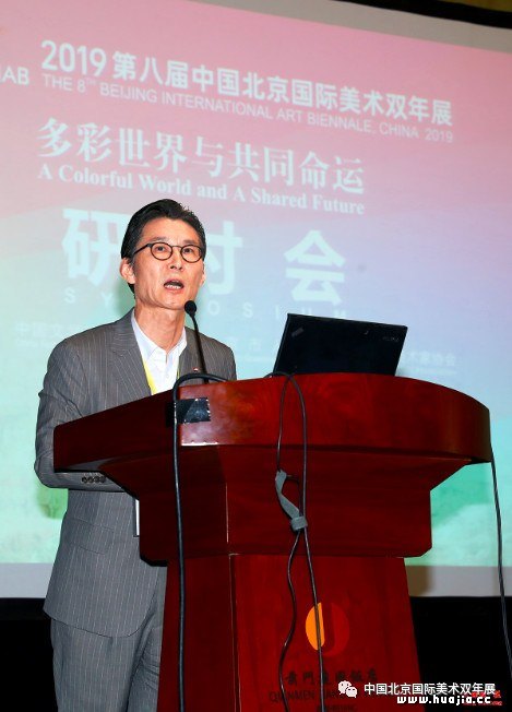 韩国美协主席李范宪 韩国美协主席李范宪此次率人数众多的代表团访华,体现出对北京双年展的高度关注和同中国美协交流的诚意。研讨会上,他充满感情地说道,中韩两国一衣带水,文化交往源远流长。两国对文化差异基本持包容、接受的态度。当前正是加强艺术文化交流、增进两国友谊的重要时期。在谈到韩国特展时,他特别引介了多位擅于表现民族审美意识、时代精神、造型艺术的韩国当代顶尖艺术家。同时,他也对中国美协明年赴首尔举办的“艺术与和平——中国当代美术作品展”交换展表达了良好期许。
