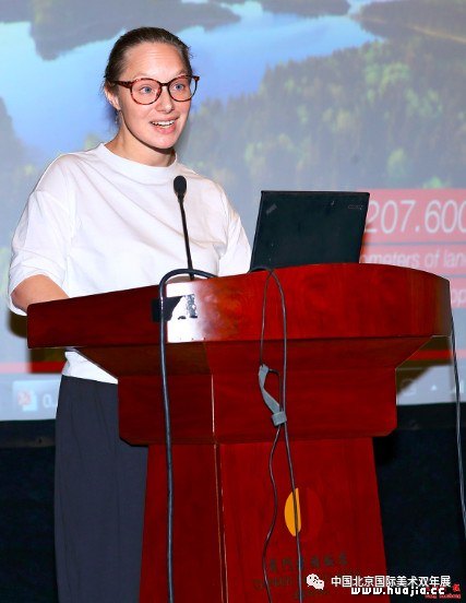 白俄罗斯特展策展人索菲亚 白俄罗斯特展是本次双年展的一大亮点,在策展人索菲亚的讲述中,听众领略了这个融合了欧洲与俄罗斯双向影响的文化载体。近20多年来,白俄罗斯越来越多地接纳来自西方的当代艺术,参展的十余位年轻一代艺术家们用各自不同的方式解读了本届双年展主题,讲述了人类存在的孤独与生存危机,同样也展现了白俄罗斯画派与后现代主义思潮结合的成果,使观众得以了解白俄罗斯艺术的主题关乎人类理想,彰显出这个国家丰富的艺术含量。