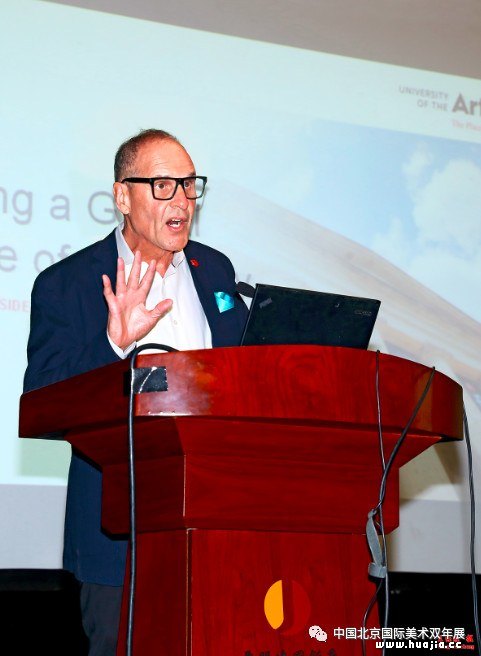 美国费城艺术大学校长大卫·雅格 美国费城艺术大学校长大卫·雅格作为此次美国特展的策展人,开门见山地强调,在当今社会里,创造力也是艺术最重要、最关键的一部分,它是艺术家和设计师的灵魂。随着数字技术的发展,世界联系日益紧密,对于有创造力的人来说,新机会正如雨后春笋般不断涌现。这也正是费城艺术大学的使命,即提高全人类创造力。他介绍到,美国特展展示了本校教师和校友的作品,展现学校追求创造性的宗旨,力求使观众从中感受到教师们带给学生的充满创造性的教育文化。他最后用一句话共勉:创造性的时代即为现在,我们都可以成为创造人类共同命运的变革者。 四、紧扣主题分享创作感言