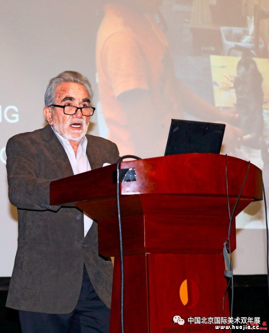 以“构建人类命运共同体背景下的国际当代造型艺术担当”为主题的第八届中国北京国际美术双年展国际学术研讨会于8月31日在北京前门建国饭店隆重举行。中国美术家协会分党组副书记、北京双年展策委、召集人陶勤出席研讨会并致辞,中央美术学院教授、北京双年展顾问邵大箴担任总主持人,北京双年展四位策划委员,即中国艺术研究院研究员王镛、《美术》杂志社长兼主编尚辉、清华大学美术学院教授包林、邹文担任分场主持人。 总主持人、北京双年展顾问邵大箴 会议邀请了韩国美协主席李范宪,原法国美协主席雷米?艾戎,俄罗斯艺术学院院士、列宾美院教授布里奥克,美国费城艺术大学校长大卫·雅格,中国国家画院艺术委员会副主任、北京双年展策委张晓凌,大型主题绘画作者、中央美院副教授廖勤,以及白俄罗斯、新西兰、韩国、上合组织国家、从西班牙到南美洲、美国特展代表共20余位艺术家和理论家围绕主题进行发言。来宾们各抒己见,就当代艺术创作与构建人类命运共同体理念的理论关联、中外现当代美术创作史论研究、本届双年展主题含义阐释、展出作品整体或局部观感等相关问题进行了广泛的交流和深入探讨,对北京双年展也给予了高度评价和中肯建议。来自世界各国的艺术家代表、艺术机构、媒体200余人出席了研讨会。总主持邵大箴首先介绍道,自2015年习近平主席在纽约联合国总部演讲时提出“共同构建人类命运共同体”以来,世界各国对此热烈回应,并多次写入联合国决议。本届双年展参观国家数量再创历史新高,充分表明“多彩世界与共同命运”的主题同样得到了全世界艺术家的认同和响应。生活在地球上的各个国家和民族面貌多彩多样,生活习惯、宗教信仰、政治伦理各有不同,但却有着一个共同的理想,便是追求和平、进步、富裕、强盛。人们普遍期待一个文明开化、多元发展的世界,这就呼唤全球的多极均衡、多元共存,这便是各国艺术家对“人类命运共同体”理念空前关注和热情参与的原因。