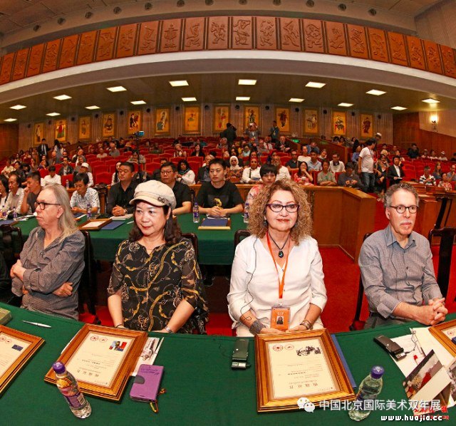 分场主持人、北京双年展策划委员包林 王镛教授在评价厄瓜多尔雕塑家的作品时,提及很多现代主义作品从自然动植物当中汲取创作题材,用单纯简约的艺术语言很好地诠释回归自然、道法自然,回归人的淳朴本性,克服人性异化,与本届双年展人类共同命运主题异曲同工;包林教授则评价道,把命运的美好想象和向往,以及我们当下的生存体验,乃至于我们向世界各国学习所吸收的各种绘画语言有机相融合,这就是一个典型的中国经验;尚辉主编在回应主题性创作时也评价道,中国传统古语中有“同舟共济”的概念,在《圣经》中也有诺亚方舟,无论来自东方还是西方,有关用舟来共渡一个劫难都是通用的象征,因此用舟来象征人类度过灾难的意向便是主体绘画的应有之义;邹文教授在评价俄罗斯现实主义绘画时,也引申到中国的传统文化,提出传承就是一种坚持,只有在这种坚持中才能形成一个国家、一个民族的文脉,形成艺术的特质,构成人类文明多样化之中的一个色彩。 在自由讨论阶段,在座听众纷纷登台发言,所涉话题也更为广泛,马来西亚、印度、纳米比亚、苏里南的艺术家表达了一个共同的感受:我们一定要意识到,以及包容彼此文化的不同与多样性,只有认同了这种“不同”,尊重不同的特点和不同的表达方式,我们才能够命运共担、风雨同舟,才能够创造出多彩的世界,可以使我们共同迈向共同命运的大舞台;英国艺术家则侧重于美育,提出不仅对青少年儿童,对成人的美育也应采取“终身教育”,培养对艺术的信心,塑造健全的人格;一位厄瓜多尔的艺术家提议,参加下一届双年展的全世界艺术家可以共同创作一件纪念作品,为北京双年展留下一个永恒的回忆。 中国画家也表示,这几天同各国美术家的交流与积累对固有的艺术观念冲击很大,今后要将新的艺术思维融入创作中;一位安徽的画家说,自己唯一能做的就是尽最大努力创作出更好的作品来捐赠给北京双年展,祝愿我们自己的双年展越办越好。 本次研讨会学术主题不仅是对“构建人类命运共同体”倡议的响应和践行,同时也为国际艺术家们提供了广阔而又颇具针对性和现实意义的交流平台。在“人类命运共同体”这一宏大叙事语境中,中外美术家们借助语言相互沟通,探寻东西方文明交融的脉络,拓展了双年展的学术视野。在新的历史起点上,北京双年展将不忘初心,继续坚守以绘画和雕塑为主的办展宗旨和特色,积极鼓励艺术家在形式语言方面的拓展和创新,不断实践绘画和雕塑在当下构建人类命运共同体这一使命中的历史担当。 研讨会期间,组委会还专门向为本次双年展捐赠作品的作者集体颁发了收藏证书,以纪念、表彰艺术家们对中外美术交流事业慷慨无私的捐助。