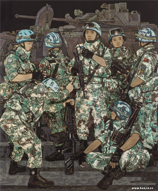 伍栋坤 北京 《中国维和部队》 漆画 180cm×150cm