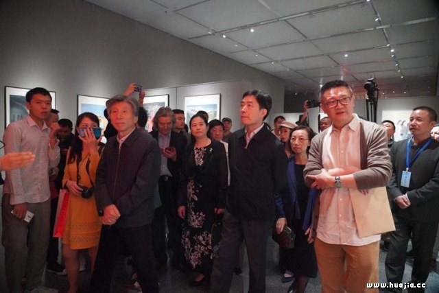 领导嘉宾参观展览 此外,本届全国美展版画作品依然显现了那些传统版种被再度开发的魅力,最基本的黑白木刻,最经典的铜版、石版,都被当代版画家熟练运用,并在表现当代社会的人文思考与视觉经验的过程中被植入新的美学意涵与视觉体验。