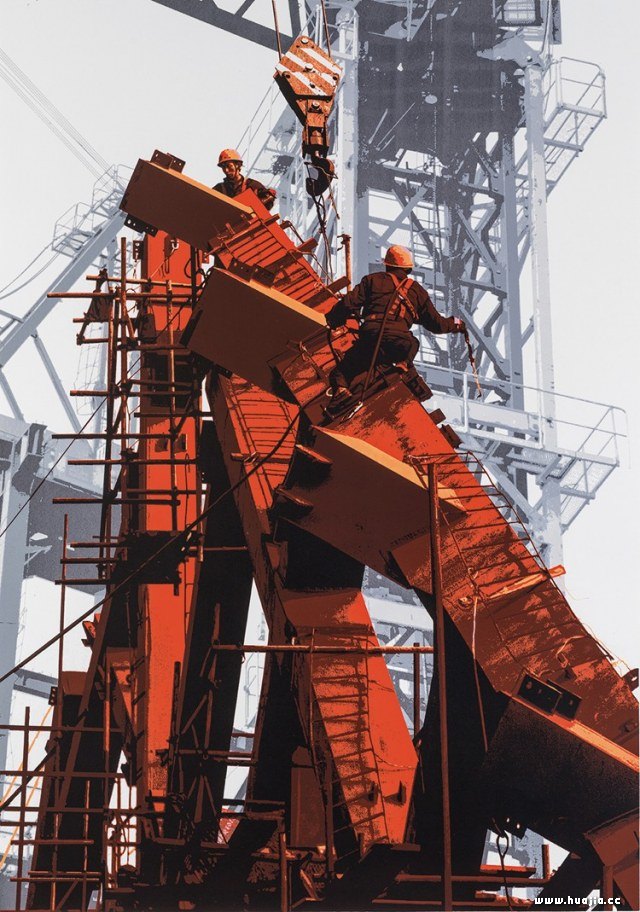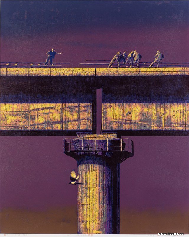 阳光下的大桥浇筑工-曹丹-铜版