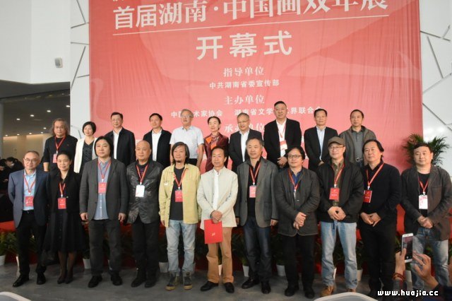 开幕式现场 出席开幕式的领导及嘉宾有湖南省文联党组书记、副主席、秘书长夏义生,湖南省文联党组成员、副主席唐贵平、张纯,湖南美术馆馆长、省美协副主席魏怀亮,湖南省文联副主席、省美协主席朱训德,湖南省文联副主席、省美协常务副主席刘云,广东画院副院长、广东省美协副主席林蓝,广州美术学院中国画学院院长张彦,首都师范大学美术学院教授刘进安,中国国家博物馆书画院院长刘罡,中国国家博物馆研究员石峰,中国美术学院中国画系主任张谷旻,福建省美协副主席、福建省美协山水画艺委会主任梁明,中国国家画院国画院研究员方向,湖南省委宣传部文艺处处长祝平良,湖南师范大学美术学院院长李少波,长沙市文联党组书记王俏,湖南美术出版社社长黄啸,湖南省美协副主席石纲、旷小津、陈飞虎、陈和西、段江华。还有省内各高校负责人,湖南省美术界老艺术家、文艺工作者,省文联各处室、省画院、省美术馆负责人,各市州文联、美协代表,各专业艺术机构代表以及新闻界的朋友们。