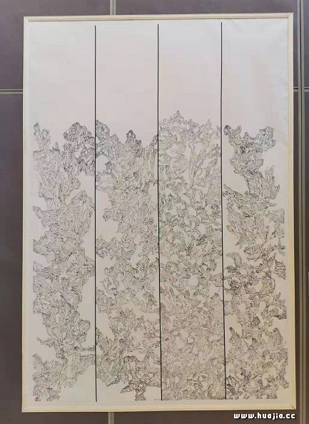 陈云书法 在展厅里,陈云在接受记者采访时表示,在近年的探索当中,他发现了一个笔墨的一个特点,就是个人面貌的一个形成,可以有形式上的独特面貌。但是还有一个更好的方向,就是可以用独特的笔墨语言来呈现自己独特的面貌。比如说用元代山水画的这种线条,枯笔的这种线条,或者是黄庭坚这种乱石铺街的这种效果,它都是一种强烈的艺术表现和面貌,也是他艺术探索的心得。故而在本次的展览上,最大的特色是将历代经典古为今用,用传统的笔墨表现当代的作品,探寻着一条独特的艺术之路。