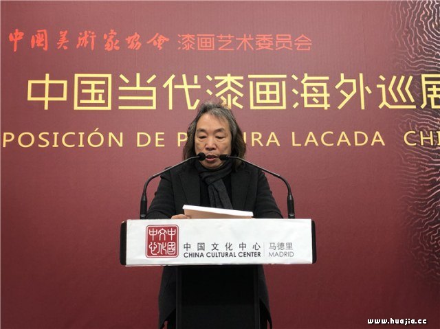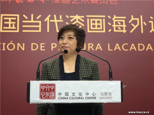 中国驻西班牙使馆文化参赞刘雯秋女士致辞中说,中国马德里文化中心代表中国驻西班牙大使馆对远道而来的中国艺术家表示热烈的欢迎和衷心的祝贺,并指出本次展览不仅展示了历史悠久的东方漆艺术的魅力,也展现了当代中国漆画艺术开拓进取、兼容并蓄的时代风貌,更是向西班牙友人传达了中国与世界共话的美好意愿。 中国美术家协会漆画艺术委员会主任陈金华教授在致辞中谈到,中国漆文化有7000多年的历史,漆画是根植于传统漆艺的一门新兴画种,经过几代漆画家的不懈追求和努力,漆画实现了从实用艺术到纯绘画语言的形态转化,已形成蓬勃发展的态势。漆画特有的温润、华丽、婉约、含蓄、神秘、厚重及深邃的特点,已形成自己独特的艺术语言体系和审美特质。近几年来,中国漆画不断走出国门、彰显中国精神,不但体现了中国对其他国家文化的尊重与包容,而且为我们学习与借鉴西方艺术带来弥足珍贵的文化资源。
