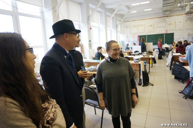 李象群副主席在研讨会上回答提问 翌日,中国美协代表团专程拜访了苏里柯夫美术学院,同多位院领导交流座谈,详细了解了苏里柯夫美院的教学体制,并就互派教师和学生进行了深入探讨。随后,团员们走访了多个院系的教学场地和工作室并与学生亲切交谈,对学院的教学设置和成果表示高度赞赏。