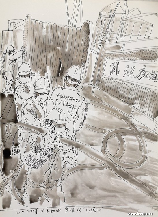 《武汉“小汤山”医院建设》 杨芳 速写