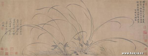 图1 郑思肖《墨兰图》卷 纸本水墨 1306年 25.7×42.4厘米 大阪市立美术馆 郑思肖(1241—1318)离世已过七百年,但他顽强地存在于元末明初人撰写的几则传记、后人所刊刻甚至是重新发现的若干卷诗文集,以及博物馆中收藏的几件归在他名下的书画之中。文本和图像被勾联在一起,讲述了一个“完整”的典范“遗民”的故事,他满腔的痛苦和愤怒直截了当地表露在日常生活和艺术之中。 作为存世绘画中的唯一真迹,大阪市立美术馆所藏的《墨兰图》起着对郑思肖的“遗民”身分盖棺定论的作用。【图1】三则明初人为他写的传记,用大同小异的用语揭示出兰花图像的秘密: 1、时写兰,疏花简叶,根不著土。人问之,曰:“土为番人夺,忍著耶?” 2、自更祚后,为兰不画土根,无所凭籍。或问其故,则云:“地为番人夺去,世犹不知耶?” 3、不画土,人询之,则曰:“一片中国地,为夷狄所得,吾忍画耶?” 大阪《墨兰图》给人的第一印象,是大面积的空白环绕着画纸中央一株茕茕孑立的兰草,只有若干片叶子和一朵花。强烈的视觉性,很容易使人接受上述文字中的表述。于是,“无根兰”就成为了郑思肖的隐语,启发和鼓舞着数百年以来的人们。 但是,为何借郑思肖之口揭示画兰意图的三则传记,全都是明代初年的文本?大阪的画卷后有累累的元人题跋,为何无一提出这样的阐释? “无根兰”是郑思肖众所周知的秘密吗? 一、消失的泥土 如果对比郑思肖的墨兰和宋元时代其他画家的墨兰【图2】,我们顷刻之间就会发现郑思肖的画以一种特殊方式凸显出来:画面中没有对空间的表现,很难说那株兰花是立在土地上还是已经被拔了出来。