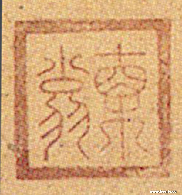 图5 南宋吉州窑褐彩开光折枝花卉纹梅瓶 高16.5厘米,口径3.5厘米,底径5.5厘米 马鞍山市博物馆 相对而言,郑思肖的《墨兰图》和传为玉涧的《墨兰图》无论在构图还是画法上都最为接近。这透露出什么信息? 二、重读印章 郑思肖号“所南”,被时人所熟知为“所南翁”。在大阪墨兰卷中,“所南翁”之名出现了两次,一次是手迹,一次是印迹。画面左边,两枚鲜红的印章钤盖在兰叶的上下。小的是朱文“所南翁”。【图6】三个字并排在方形的印面。从印文字体来看,与活动在南宋和元代前期的一些禅僧所用的印章相似。在存世的宋元禅宗水墨画上,我们可以搜集到属于著名禅僧的以下印章,有“浙翁”【图7】“直翁”【图8】“简翁”【图9】,甚至还有一位日本僧人“可翁”。置郑思肖的“所南翁”于其间,可以看到都是朱文印,字并排布置,每个字都占据印面上下的整个空间。篆法风格相似,都拉长了每个字的笔划以占满下部空间。“所南翁”尤其与“浙翁”印相近。
