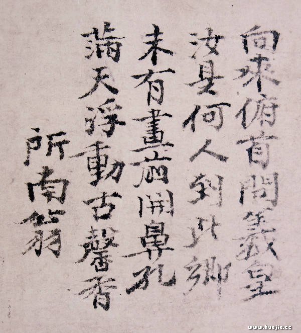 图14 《墨兰图》中的郑思肖题诗 六、诗歌 “图成缀数语,语怪谁能通”。早在韩奕眼里,大阪画卷上的题诗就是个大大的谜团: 向来俯首问羲皇, 汝是何人到此乡? 未有画前开鼻孔, 满天浮动古馨香。 现代学术中,对这首诗有不同的读法。以何惠鉴(Wai-kam Ho)的英译影响最大: I have been asking Hsi-huang [the ancient hermit], with my head bowed: Who were you—and why did you come to this land? I opened my nostrils before making the painting, And there, floating everywhere in the sky, is the antique fragrance undying. 我希望提供另一种理解。诗的关键词,是第一行的“羲皇”和第三行的“未有画前”。“羲皇”是远古时代的圣王伏羲,是传说中的始祖神,古史中的第一位帝王,也是“八卦”的创始者。诗的首联“问羲皇”一语,显示伏羲这位上古传说的圣王,正被某个人物询问。此人询问的是伏羲的身分:“汝是何人到此乡?”暗示出这个人的年代至少与伏羲相仿,甚至更为久远。这位问询者是谁?虽然有很多可能,但最直接、不用二次引申的回答就是诗的作者郑思肖自己。因为这首诗是在咏兰,所以“此乡”就是画中兰草所生长之地。意指这是一株上古的兰草,至少和伏羲一样久远,甚至比他更久远。这种意义,恰恰唤起的是文学典故“羲皇上人”的意象。这个词来源于陶渊明。在写给儿子的一封信中,陶渊明称呼自己为“羲皇上人”,烘托出特别的隐士形象。根据对“上”理解的不同,这个词具有两层含义,一是指伏羲以前的人,一是指伏羲那个时代的人。虽有不同,但总归是指极为久远的、理想的太古时代。 通过唤起“羲皇上人”的文学意象,郑思肖把自己想象成太古之人,见到了伏羲,并且进行了一场对话。伏羲的时代,或者说比伏羲更早的时代,意味着文字和图画被创造以前的时代,因为正是伏羲创造的“八卦”标志着文字和图画的萌芽。如此来看,诗的第二联就可以有新的解读。 “未有画前”一般被解释为在绘画被画出来之前。“画”指这幅《墨兰图》。但是如果我们想到上面提到的伏羲所处的太古时代的语境,“画”就可以解释为“画卦”,即制造“八卦”,或者更具体的说,是卦象的一划。在这个意义上,“未有画前”就是“八卦”创造之前的时代,暗示着宋元时代易学研究的一个核心理论。《周易》或者称《易经》, 很早就被列为每一个儒家学士都必须研读的最重要的儒家经典之一。北宋时,邵雍(1011-1077)是这个领域首屈一指的学者。在他的理论中,“画前元有易”是一个被广泛讨论的命题。“易”指的是宇宙的形成和变化的根本原理。“画”就是卦象的一划,也称作“爻”。通过“八卦”所体现出来的宇宙原理“易”,在“八卦”被伏羲创造出来之前,就已经存在。那么,我们如何知道它确实存在?这就出现了“先天之易”和“后天之易”,也就形成了“先天学”和“后天学”。 杨时、朱熹等宋代哲学家用“未有画前”或“未有画时”来总结邵雍的先天之学理论。这正是郑思肖诗中所用的词。在诗中,他以一种幽默的方式讨论了这个问题。在宇宙形成之初,在伏羲出世从而画出“八卦”之前,什么东西存在?是一株太古时代的兰草,和它散发的无以伦比的馨香。 这样一来,郑思肖这首诗的意义就清楚了。诗的上联,与陶渊明同属于羲皇上人的郑思肖对伏羲进行提问,下联是伏羲的回答: 先前,(我)俯首作揖,询问伏羲: “你是谁?到这里做什么?” (伏羲回答说):“在还没有画出八卦前的宇宙初创时代,我张开鼻孔, 闻到了漫天浮动着的上古兰花的馨香。(所以我找到了这里。)” 这首诗体现出的对易学的深刻理解,在郑思肖留下来的可靠的诗文中可以进一步观察。他在《我家清风楼记》中就阐述了“先天学”的思想: “先天之乾,初爻始动曰巽。六子首出,莫先于风。”因为在先天八卦的方位中,“乾”和“巽”是紧挨着的,所以代表风的“巽”就在郑思肖的易学思想中具有了重要的地位,是宇宙万物最先出现的现象,也是催生其他事物的动力。郑思肖进一步对“清风”进行了阐释,他认为有三种“清风”。第一种是自然界中作为物理现象的风,即“天地一时之清风”。第二种是“古今不息之清风”,是“道德超迈之清风”,也就是古代隐士许由、伯夷、叔齐、屈原、严子陵等的道德风范。这种带有儒家道德色彩的清风比自然界中的“清风”要高级很多,体现为驱除一切浑浊气味的香气: “超万浊以立命,永吹此香,浮动终古,其清又至矣。”然而郑思肖最推崇的是第三种“清风”,是禅宗世界观中的“清风”: “非清之清,风而无风。非风之风,清而无清。”这种“清风”体现出宇宙最根本的原理,也就是先天之易中的风。 这篇《我家清风楼记》可以解释《墨兰图》题诗中“未有画前”的先天之易的思想。为何在描绘兰花的画上题跋这样的诗句?正是因为兰花恰是以清香为世人称道的,被称作“国香”。而“香”又是与道德上的“清风”和禅宗世界观中的“清风”有关的,并进而与先天之易中代表风的“巽”联系在一起。他在《我家清风楼记》中说道德的“清风”能够“永吹此香,浮动终古”,禅宗的清风更是能让人“满鼻生香”,不恰恰就是《墨兰图》题诗中的最后一句“满天浮动古馨香”吗?同时,郑思肖那个十六字印章也可以得到进一步的解释。如果说“求则不得,不求或与”体现了对佛教教义中“求不得苦”