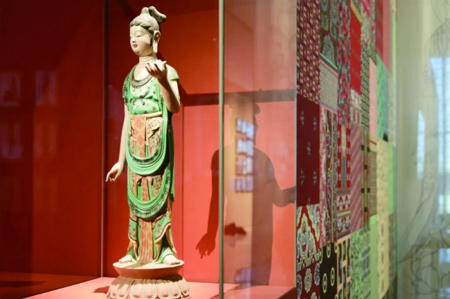 穿越时空的回响 近日,北京又掀起一波“敦煌”热,先是中国美术馆拉开“墨韵文脉——甘肃丝路艺术珍品展”的帷幕,展览汇聚敦煌研究院、甘肃省博物馆、甘肃简牍博物馆以及中国美术馆藏品240余件(套),涉及彩陶、简牍、帛书、画像砖、花砖、陶俑、木俑、写经、彩塑、临摹壁画等多个类别,勾勒丝绸之路上的绵长文脉。作为展览的延伸内容,“丝路歌韵:敦煌舞乐服饰展示专场”以歌舞与服饰展示相结合的形式,展现敦煌艺术的精神内涵。二者相映生辉,吸引观众纷至沓来,可谓开展即是爆款。 在北京展览馆上演的“如是莫高”敦煌艺术大展同样为市民游客带来了一场别开生面的视觉盛宴。展览展出了九座1:1复刻的敦煌石窟经典石窟群,其中的盛唐第217窟甚至在敦煌当地都未对外开放。通过精准的数字化扫描与精细的手工还原,石窟中的壁画、雕塑、建筑结构等细节得以高度复原,让观众亲身体验敦煌石窟的文化精髓与艺术震撼。同期亮相的“莫高精神”红色主题展,通过照片与影像,致敬一代代莫高人“坚守大漠、为国护宝”的赤子之心,展现敦煌研究院从荒漠孤守到领跑世界文化遗产保护的使命传承。 而在中国工艺美术馆(中国非物质文化遗产馆)开展的“云衣霓裳:2025敦煌服饰文化暨创新设计展”,则展出了敦煌服饰文化研究暨创新设计中心团队七年的研究和创作成果,共计369件作品,是以敦煌石窟实地考察为基础,结合文献资料查证,根据敦煌壁画或彩塑图像整理绘制的人物服饰效果图和重点图案细节图,以及具有代表性的服饰艺术再现作品和创新设计作品。 敦煌作为丝绸之路的重要文化标志,其背后的故事和艺术价值在这一系列展览活动中被重新发掘和讲述。“敦煌热”不仅在于对古老文化遗产的保护,更在于推动其在现代生活中的再生与应用。随着这些展览和演出的不断展开,人们期待着在情感与艺术的交融中,寻找历史和现代的联结,以及文化传承的新路径。
