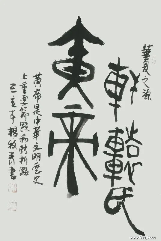 规格:45cm x 68cm/2.7平尺款识:华夏之源。轩辕氏黄帝是中华文明历史上重要节点和转折点。己亥春杨牧青书。